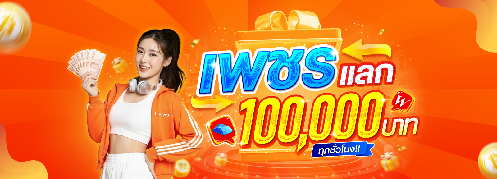 ร่วมกิจกรรมลุ้นแจ็คพอตเงินสด 100,000 บาท แจกจริง ไม่จกตา! แค่ลงทะเบียนก็มีสิทธิ์ลุ้นทันที ไม่เสียค่าใช้จ่าย สมัครเลยตอนนี้